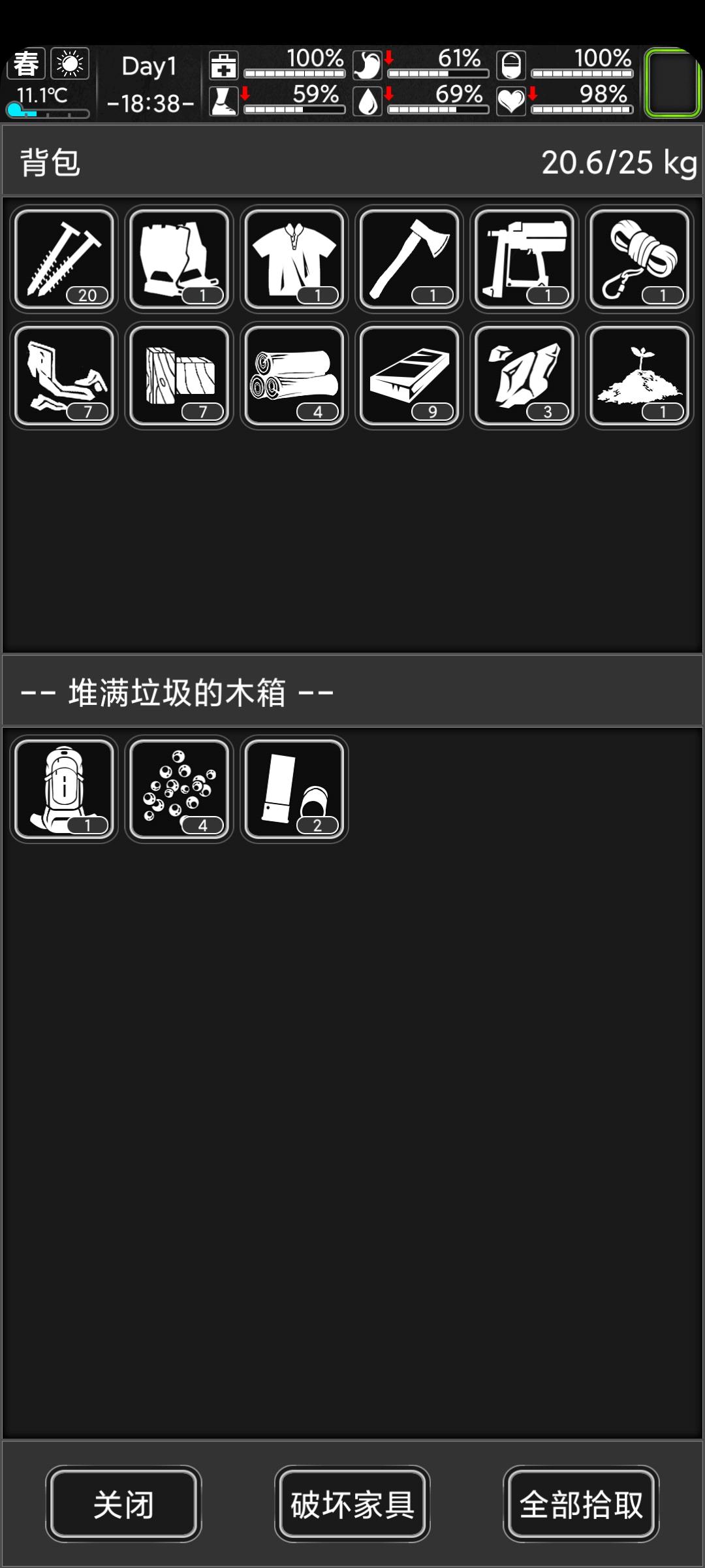 第一次写攻略有点小紧张,请萌新嘴下留情,多点关爱,少点责备。在拾荒方面:1.饮水机,密道酒桶和桌子必探索,很高概率出矿泉水。2.饮水机,酒桶,水箱必拆,极高概率出混浊水,混浊水3瓶做1瓶矿泉水。3.目前有喷泉的公园水量是4000到6000,300水量1瓶更混浊的水,2瓶更混浊的水做1瓶矿泉水。4.冬天去有喷泉的公园可以采集到灰色冰块,万一真的水不足可以直接吃灰色冰块(不要制作成水),注意