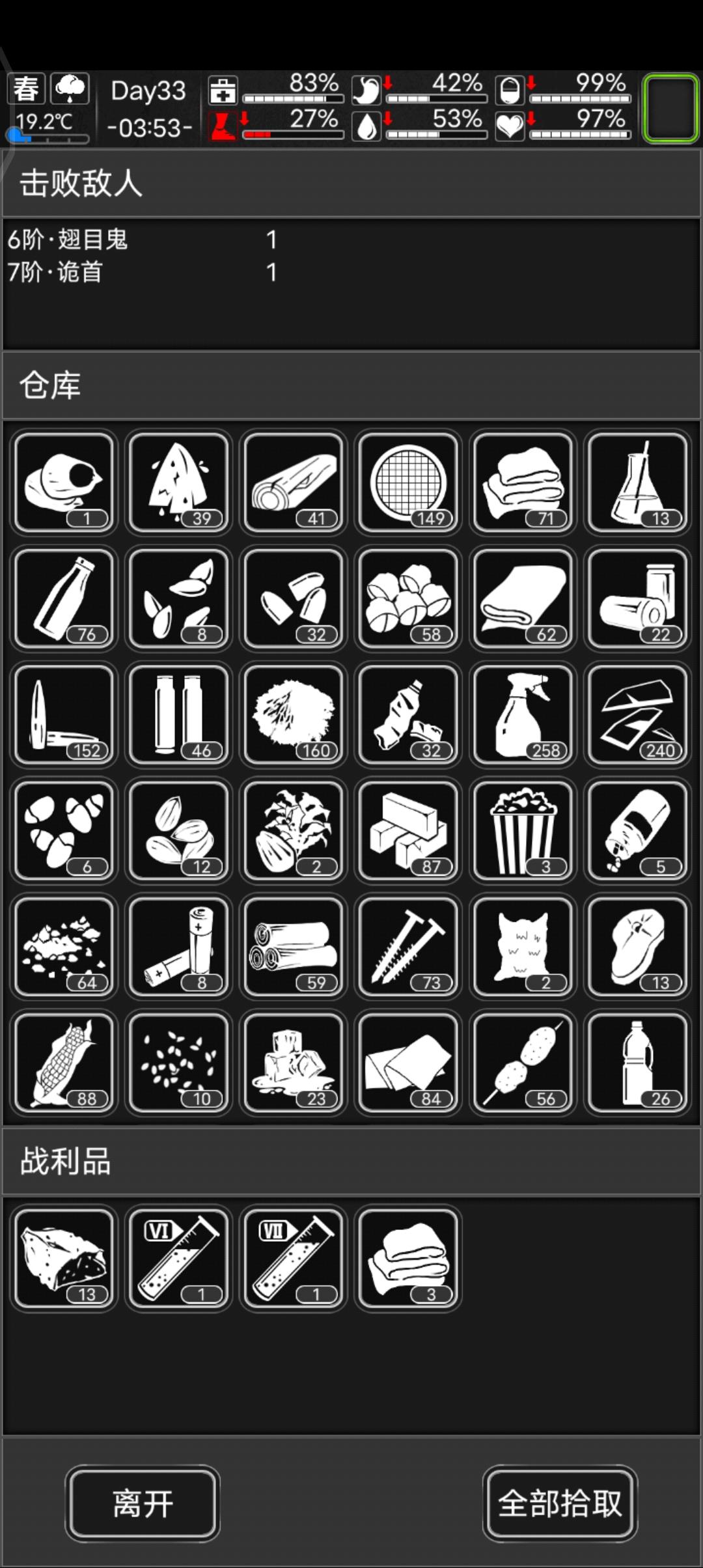只有猎刀想打个六血愣是找不到合适的尸潮,没办法打个七阶噩梦,好不容易来个翅木鬼,后面还跟着个诡首,两个小时啊,真累 心疼我的两把猎刀
