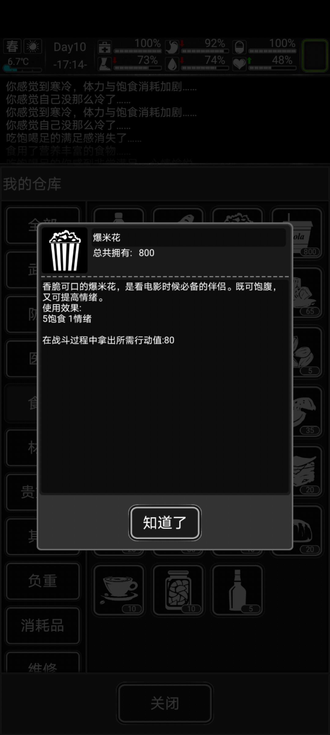 出于好奇(绝不是想氵贴)去测试了一下停车场的收费标准:是纯粹按食物的饱食度还是会考虑食物的价值。这是我在停车场停了65天的自行车大军(不知道有没有集齐所有自行车种类),我带了泡面和土豆炖肉两种价值不同,饱食相同的(20饱食)食物来缴费。如图所示,艾文收费是只看食物的饱食度,不看食物的价值,所以最好就是用泡面、压缩饼干这种饱食高,价值低的食物和他交易。(友情提示,长期把车停放在停车场不管当心后面