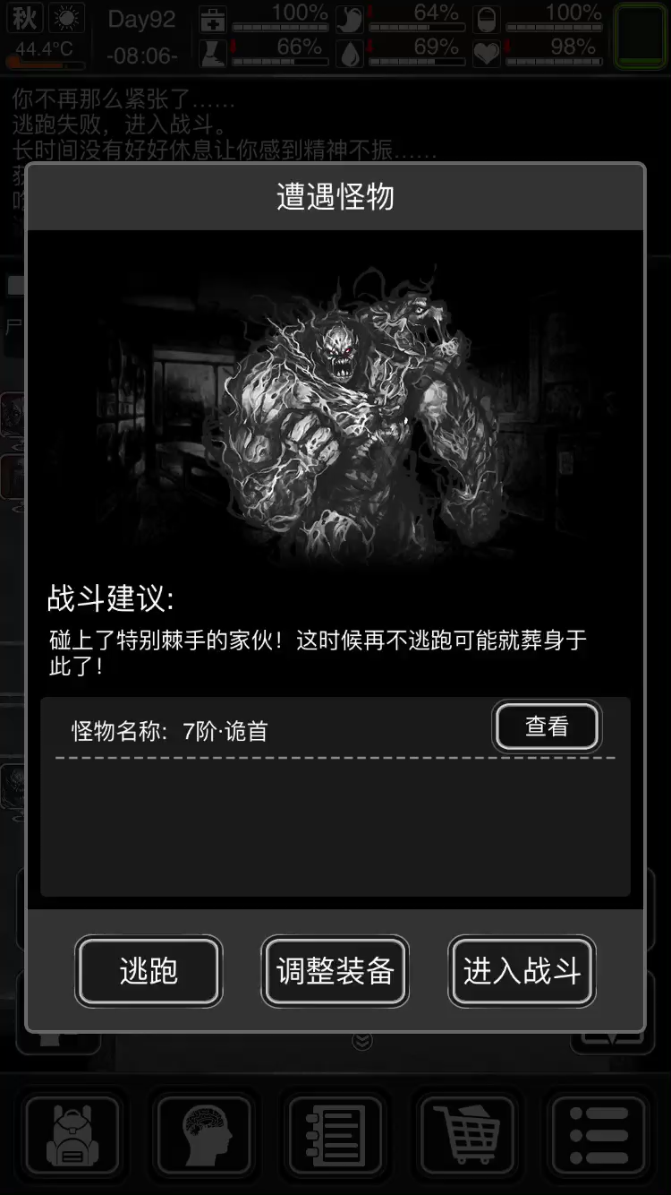 捡垃圾看到劝退君王或者慈禧不想打怎么办?绕到一个离门口或者楼梯远的地方当场睡觉,会被怪物打断,然后就可以逃跑,跑不掉的进对战以后空手后退,然后你就回到上一层或者大地图了,这时候再进去就可以了如图是我用这个方法把劝退君王从门口引到后面以后的效果,前面的过程忘了截图