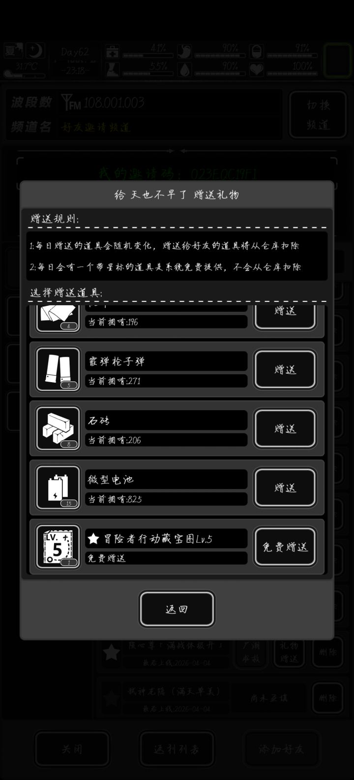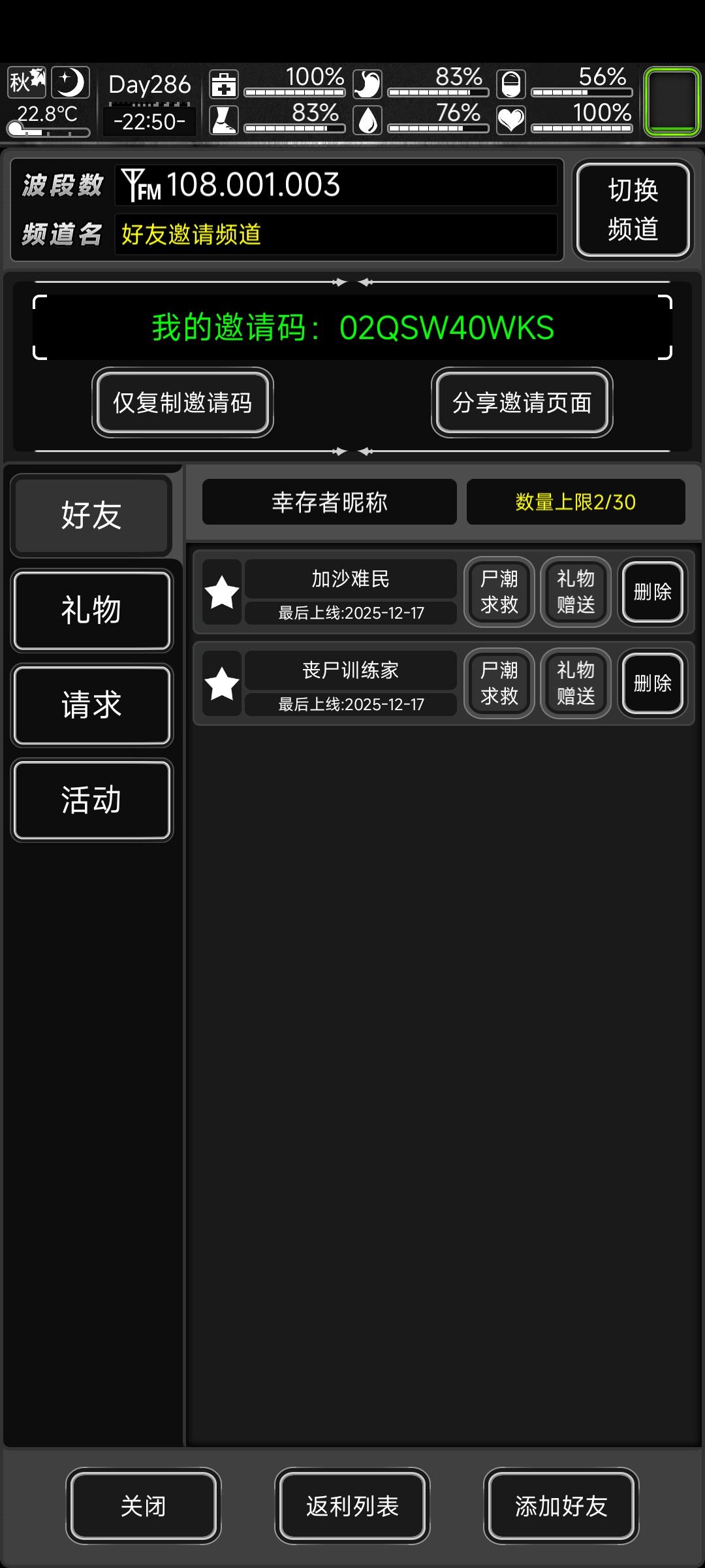 为避免论坛无用贴的增多,每日花费大量时间进行删贴、禁言等行为,不仅非常的不友好,还耽误其他游戏消息反馈。请勿单独开帖子发好友邀请码。如果大家造成论坛和群的混乱,制作组和玩家之间的沟通障碍。我们将会及时关闭好友功能。那么好友功能对应的后续功能与福利活动将无法实现。希望玩家能够准守论坛规则。让我们用更多的精力快速的更新出更多的内容。谢谢大家的支持。