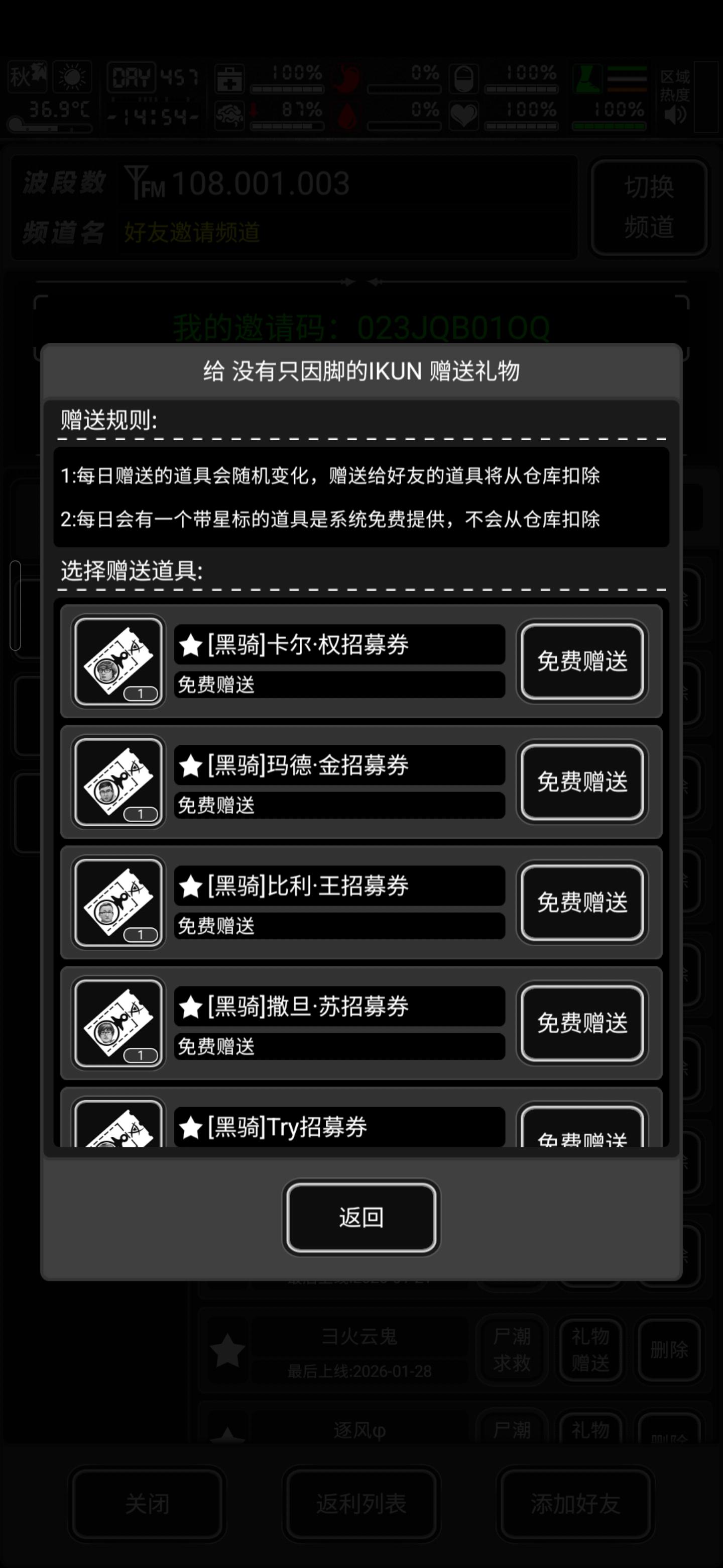 送各种黑骑 19个好友位