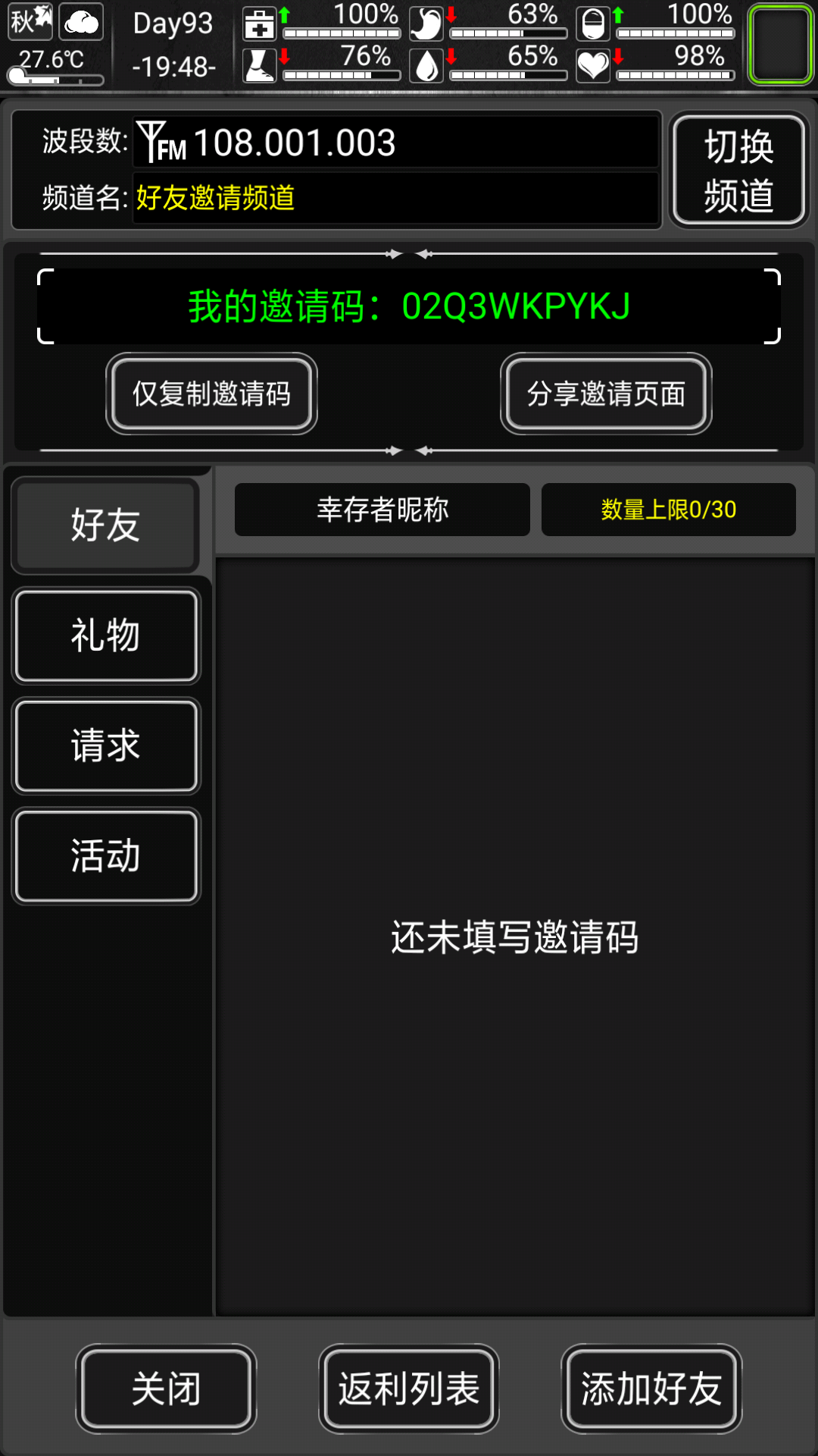 纯萌新,一个好友没有,玩到70天了,求个好友看看有好友能干啥😂😂02Q3WKHRHX