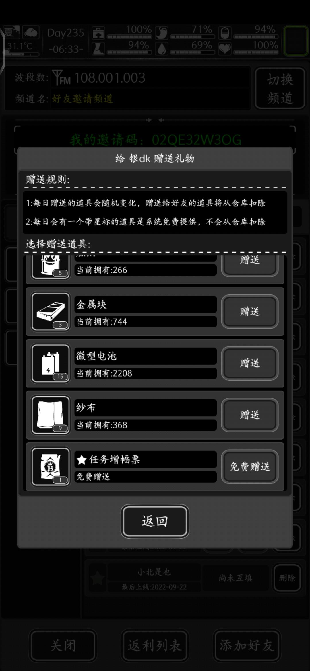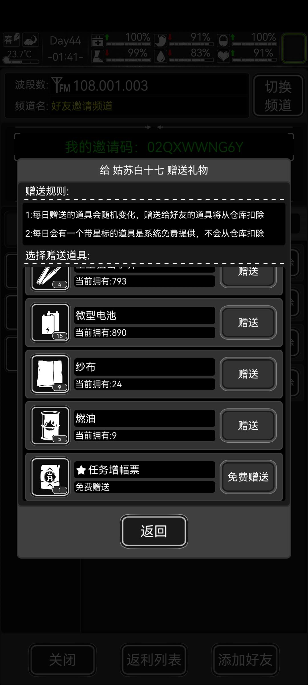 02Q530N6TK每天上线送东西加了好友的留下邀请码咱好互加回去。