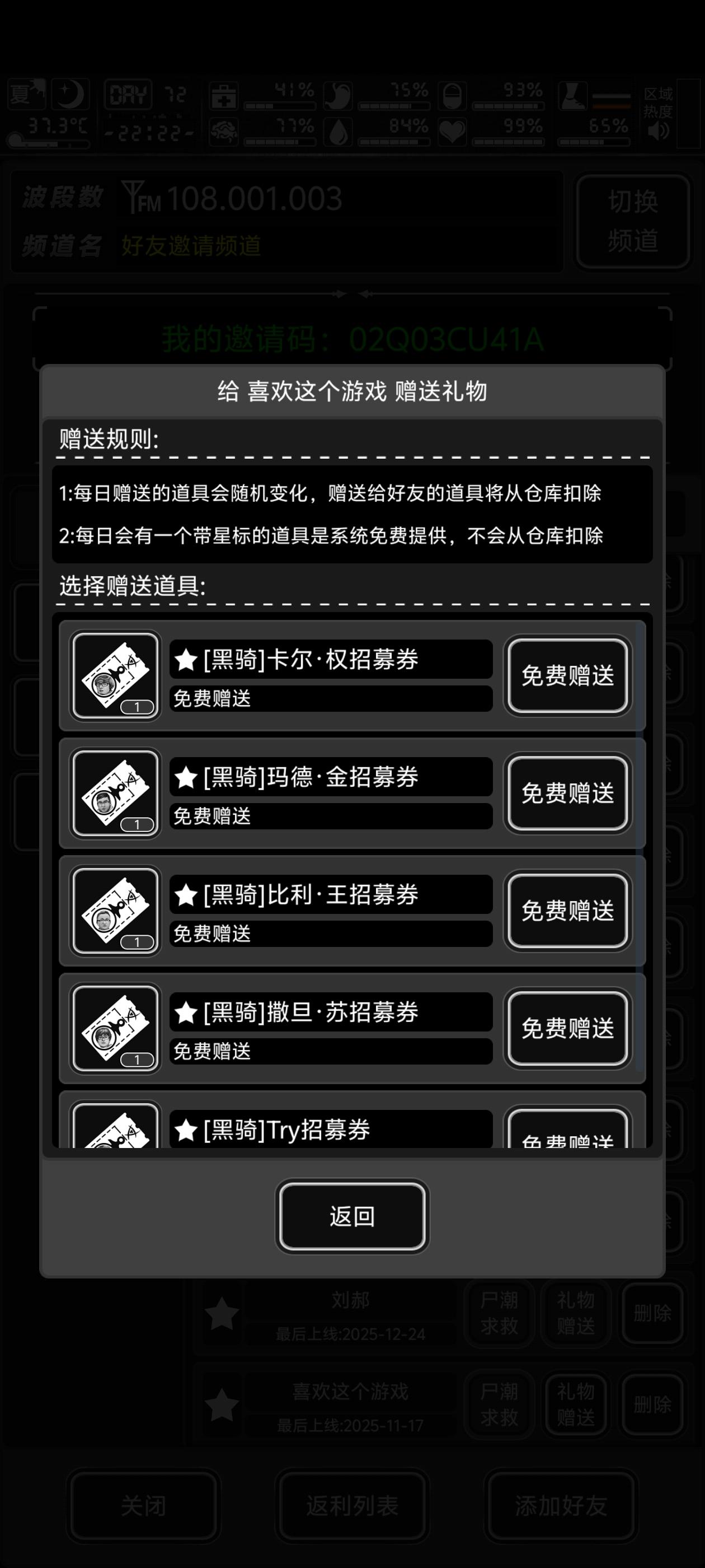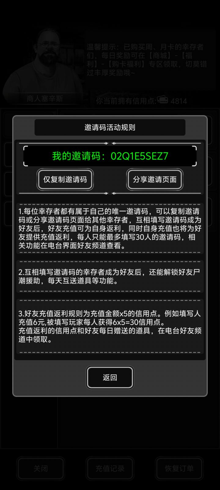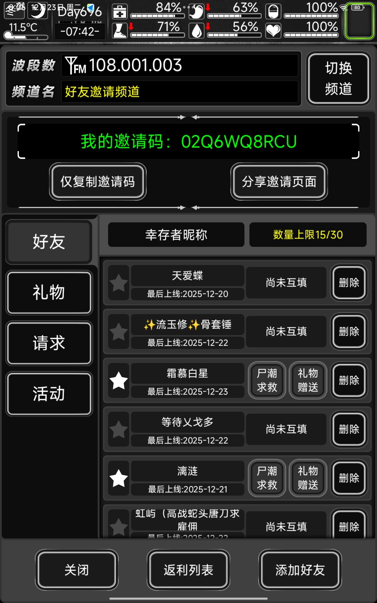 以前玩过,账号忘了,重新开坑,拒绝白嫖党,有打算等元旦活动的互加。02Q1E5SEZ7