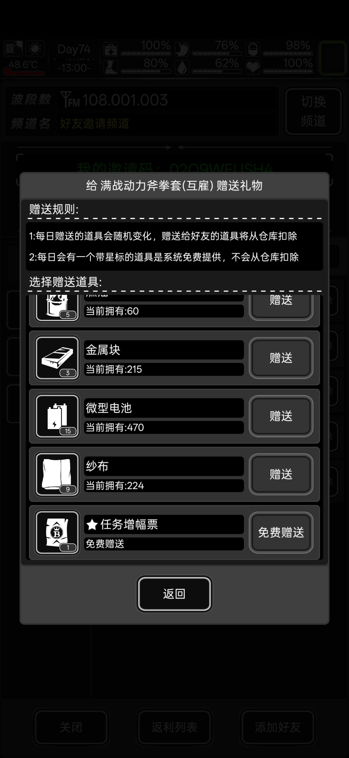 #活下去 玩了几千天 就欧过这一次 还是满拾荒 来点长期好友