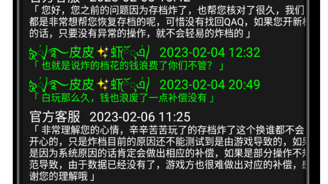 什么叫异常操作,游戏有这项功能,那就是正常操作,云存档回不了档难道不是游戏的问题?还说是我搞炸的,难道我自己闲着没事自己搞自己玩?垃圾客服炸档一点说法没有就会推脱责任,别拿没有数据当借口,上传的云存档难道会自己删了?你们找不到原因,就说是玩家的原因,在玩这游戏的千万别冲了,谨慎点,有问题也不处理就会敷衍了事。