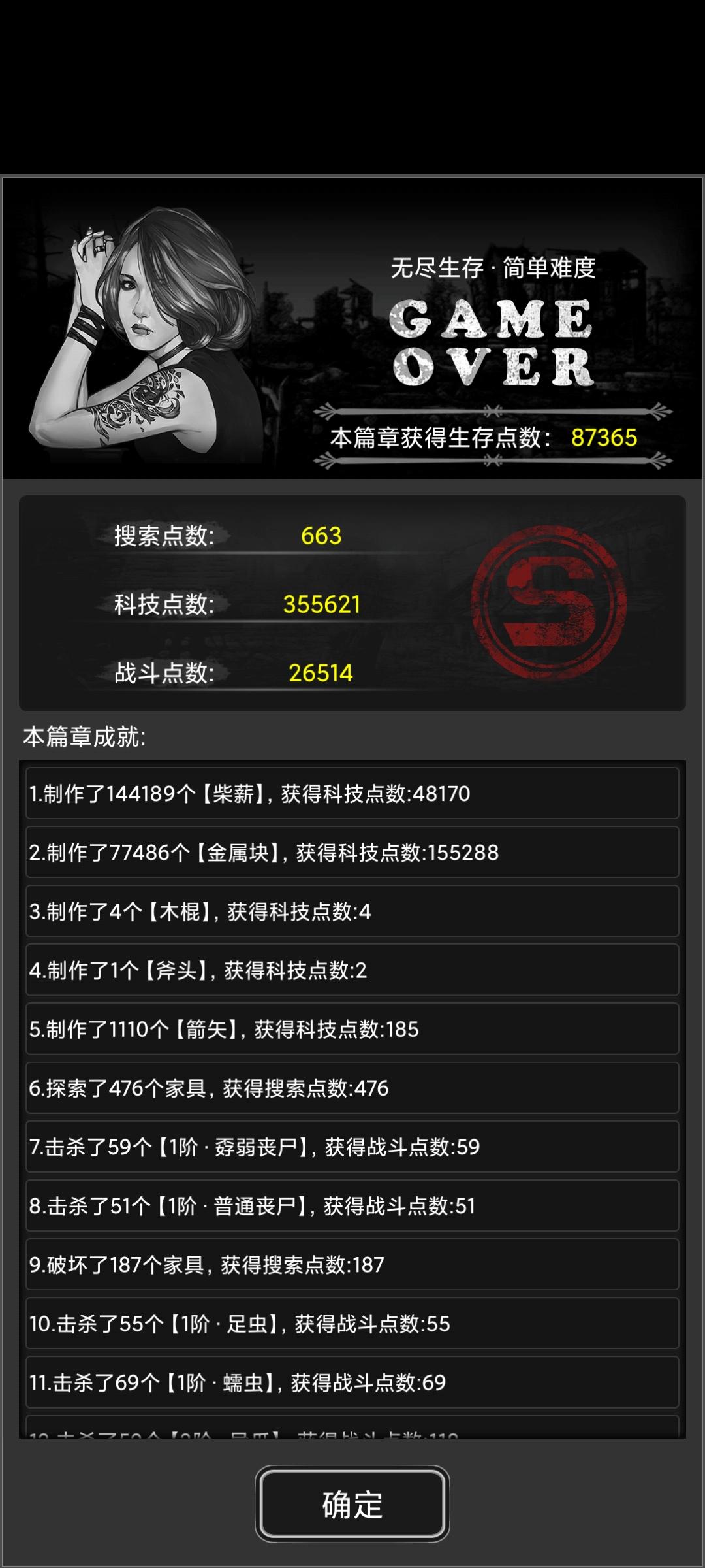 无尽简单626天结档了,第一次单纯刷科技而开的档,从3.12号到今天20号,9天。没啥好说的,死于没有菜刀,从300天起一直不能做异变入侵,导致地图上和尸潮全是异变体,拿着jtl被异变毒甲虫撞死了,导致烟瘾没了,想着电台一直锁着,后面没血交易也没法玩,就结档了。