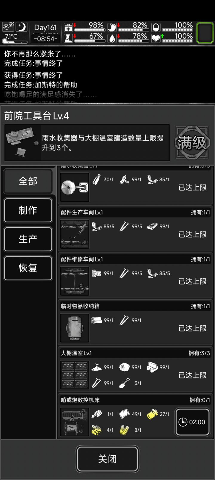 如图,我这边已经凑齐了,所需的材料,但是就是修建不了。我也搜了其他人的情况,也有出现类似的#活下去了