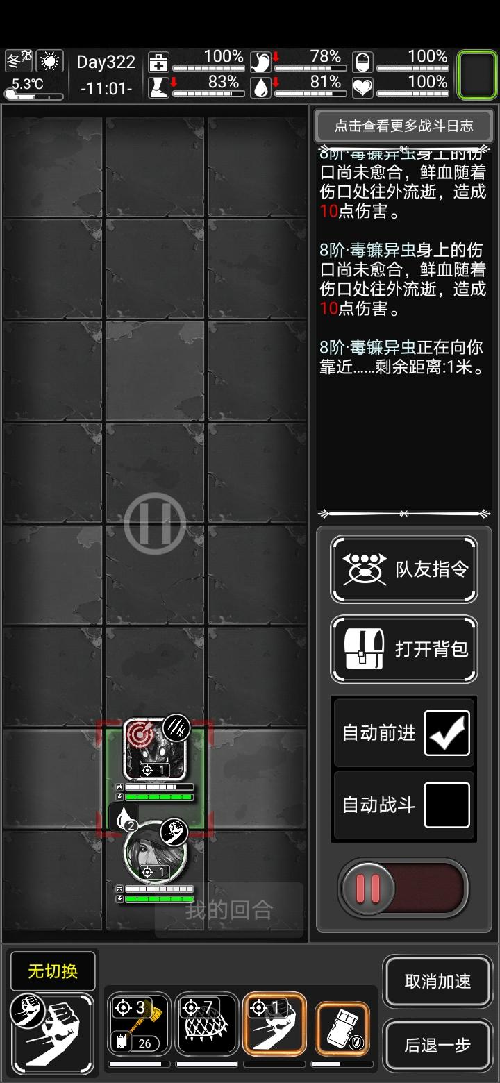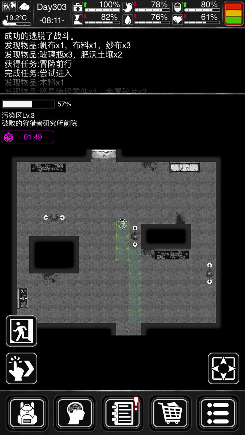 话说大佬们出去捡垃圾的时候,拆不拆家具?污染区拆家具,材料丰富,所以我只去污染区混。不拆又没材料,材料多了发现也没用啊。制作太耗时间了,缺水缺粮的,还提示变宅了。中期是怎么玩的,我现在噩梦162天了,冬天,四级污染区。夏天高温,穿了一身降温装,解决高温问题了,种了几次西瓜和草莓,缺水了,就不种了。秋天种很多小麦和土豆,小麦造酒和面包,还是缺水。冬天就很尴尬了,穿五级保温熊大衣,手和头