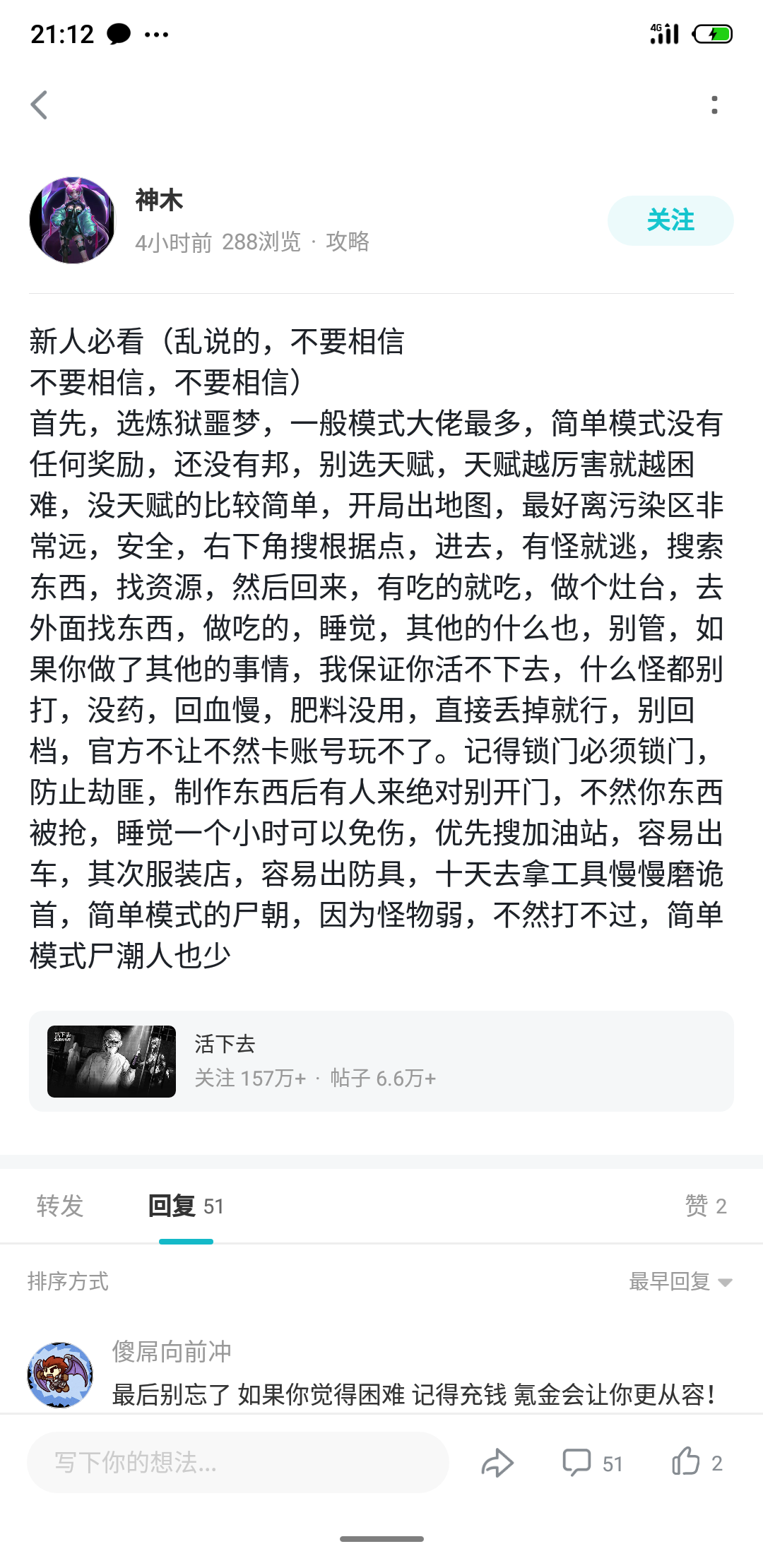 嗯怎么说了,公主病?觉得全世界都要围着他转才行。攻略瞎搞(“不要相信”是被说了后面改的)。新手这么跟你思路走《活下去》或许又少了一位玩家。希望这人没事🙊