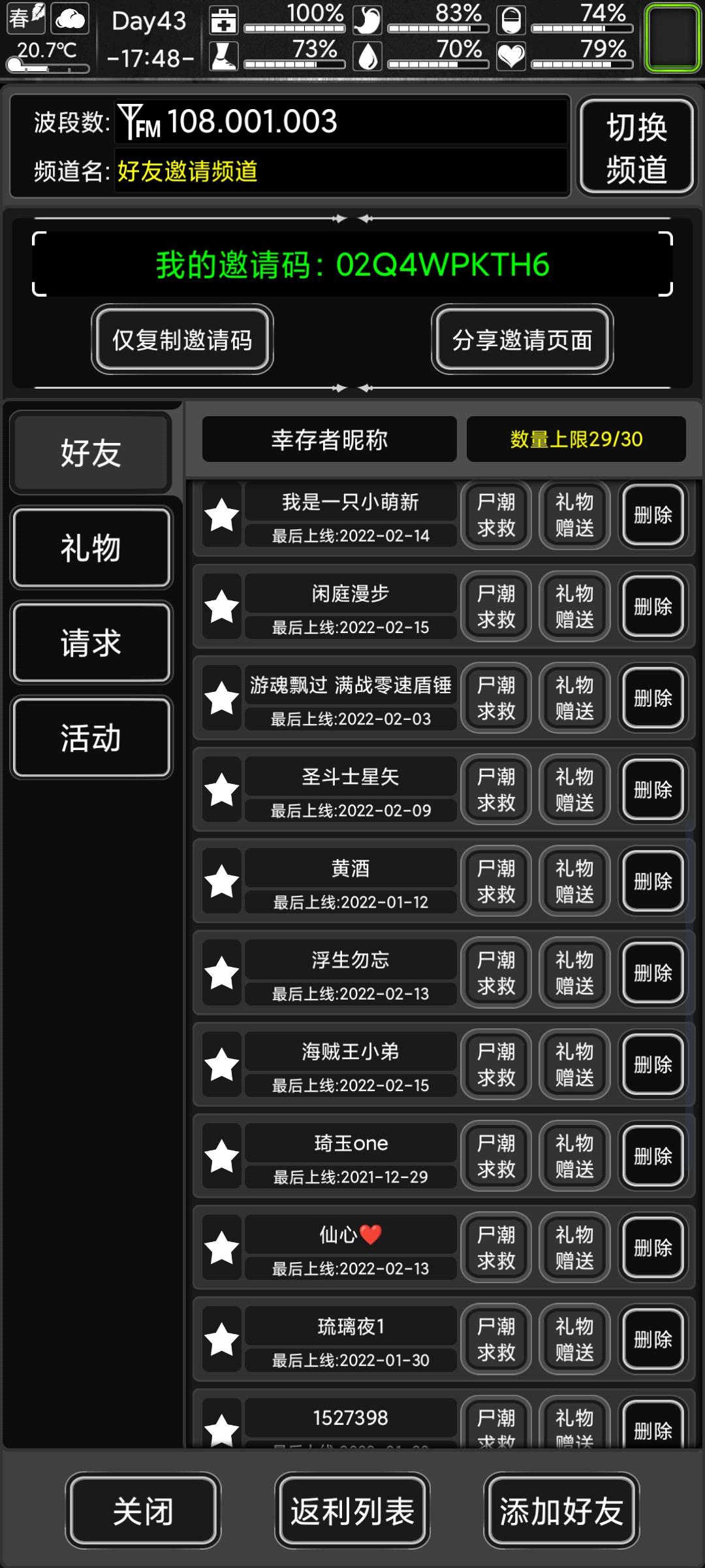 我一直在犹豫,该不该删那些有段时间没上线的好友。现在每天的礼物还收不到五个。但是我现在也是处于蔬菜,每天签个到。该不该删呢?