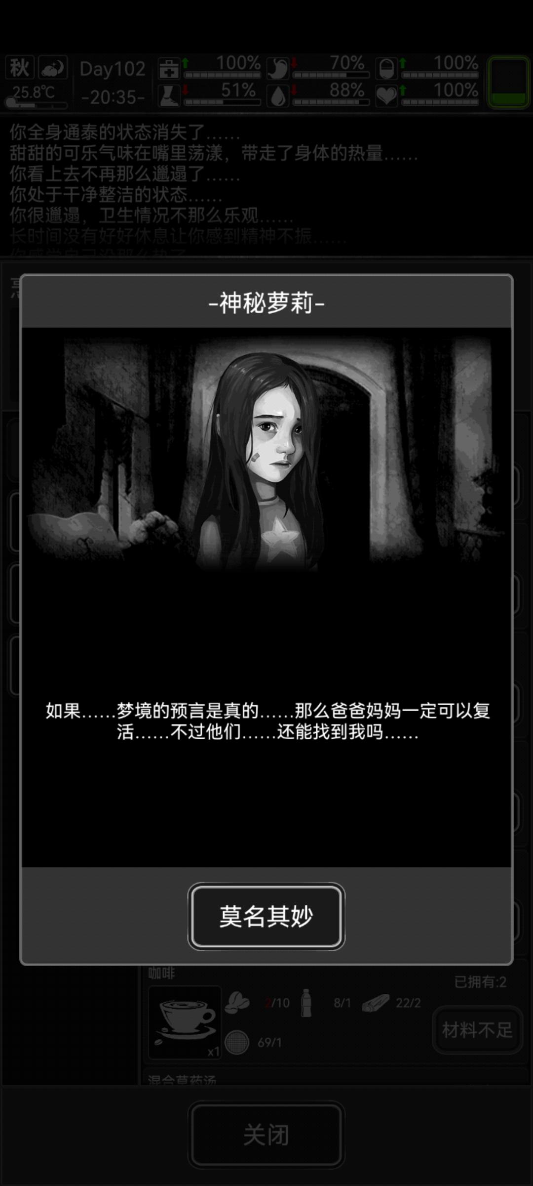 这就是逼人死,教程篇什么也不能做,也没物资饥饿都是0,离开教程就是死,666