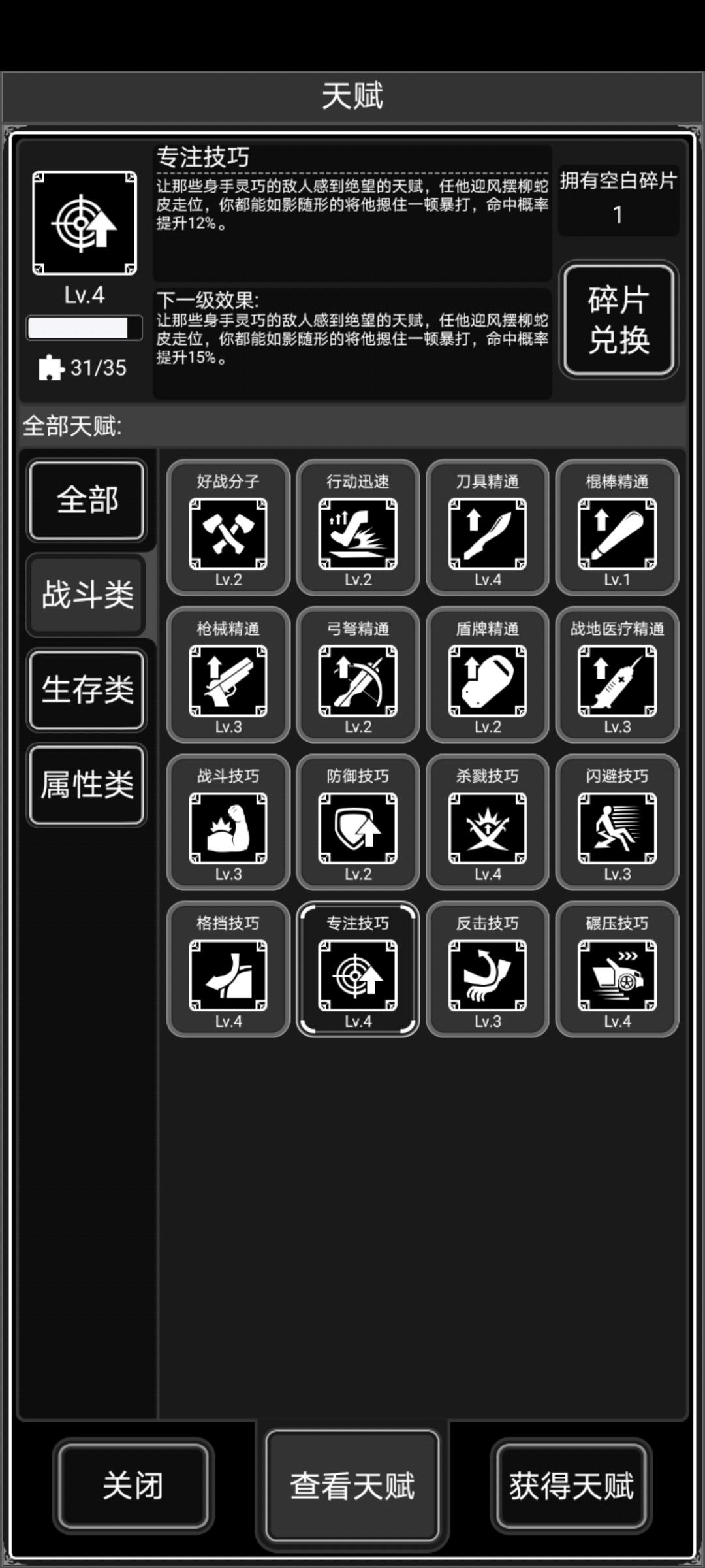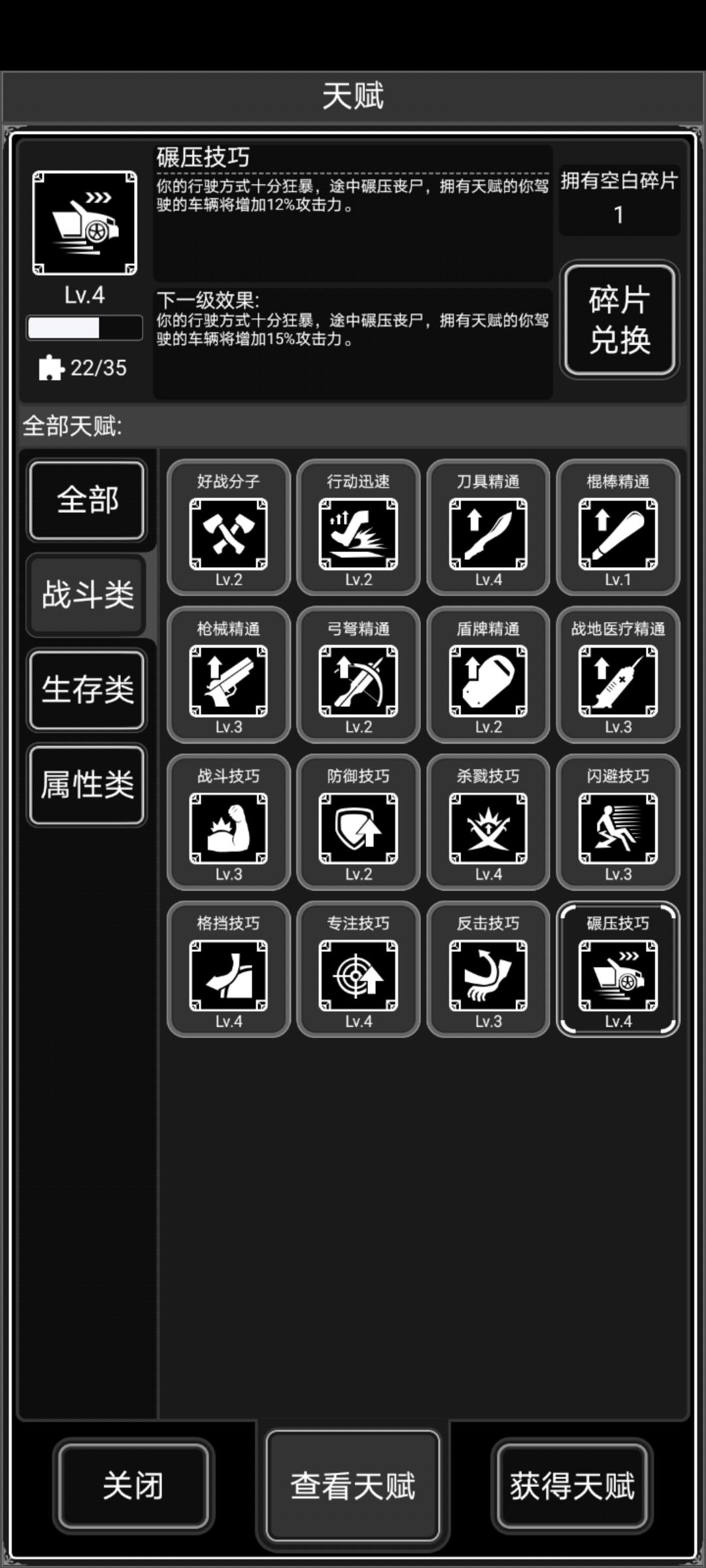 快5级的专注和碾压 以及用空白碎片升的3级枪械和1级棍棒