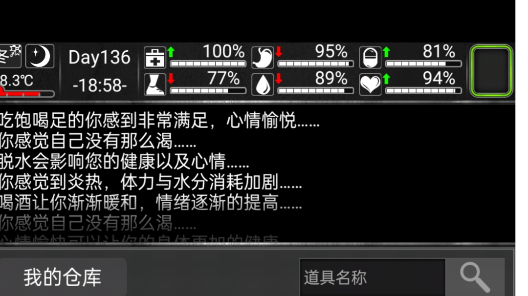 由于脑子一热,开了一个炼狱噩梦档,就把活动或者兑换码全兑换到那个档去了。结果导致136天做委托的时候遇到七级怪清剿任务,由于子弹不足而惨死两次,有没有朋友能帮忙分析一下,之后我是苟家里刷天数,还是想办法运营如图所示,要不要拿几把抢去换食物,之后一直苟家里,已经没有子弹了,要枪似乎也没用。或者去拿材料换点子弹继续杀