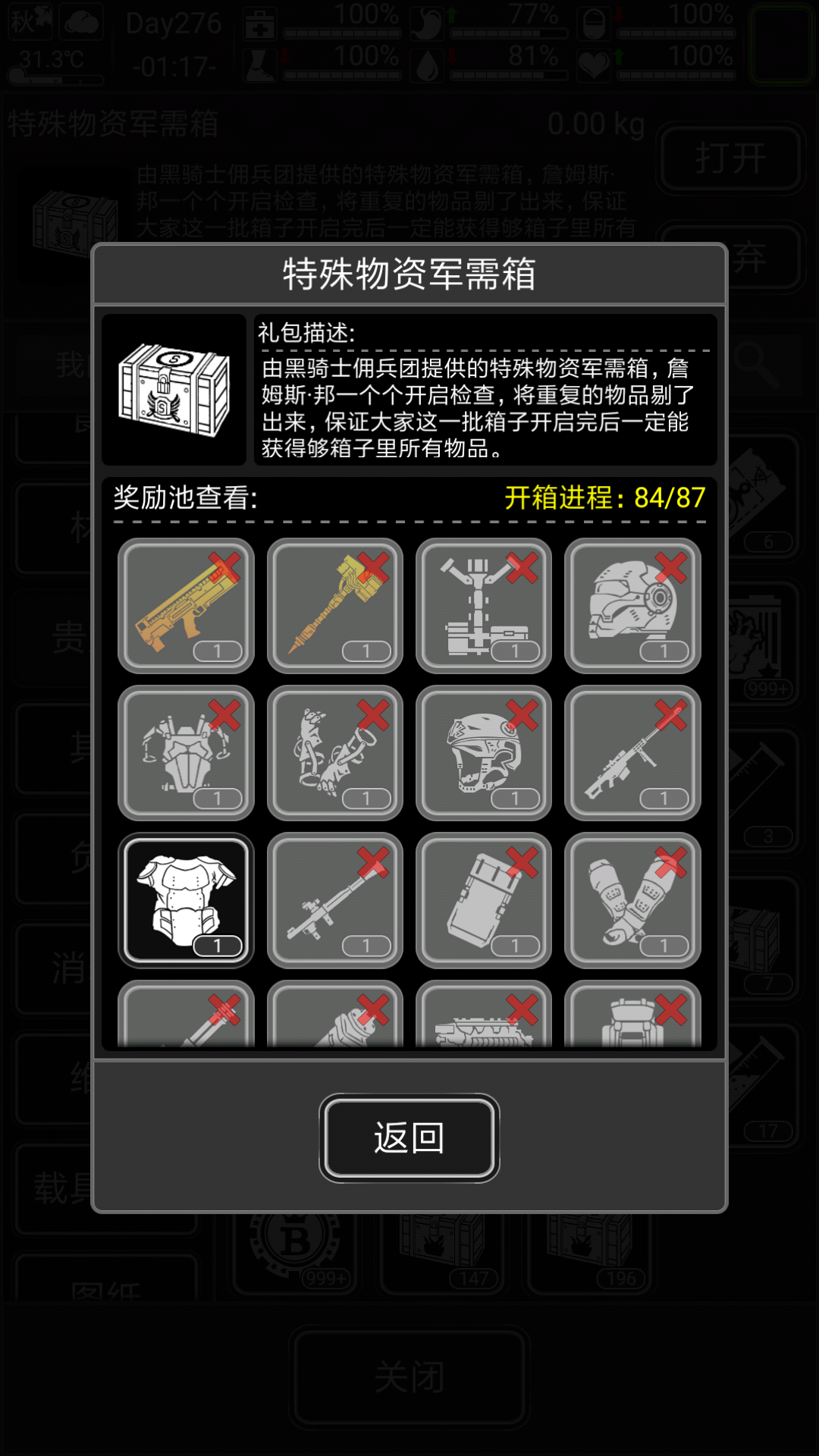 现在开了84个,终于出了把枪,还有4个空的不想开了,我想问一下,如果87个开满后,是不是重置奖池变为0/87 呢?