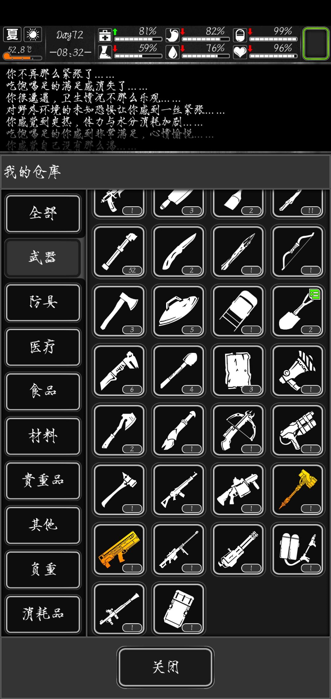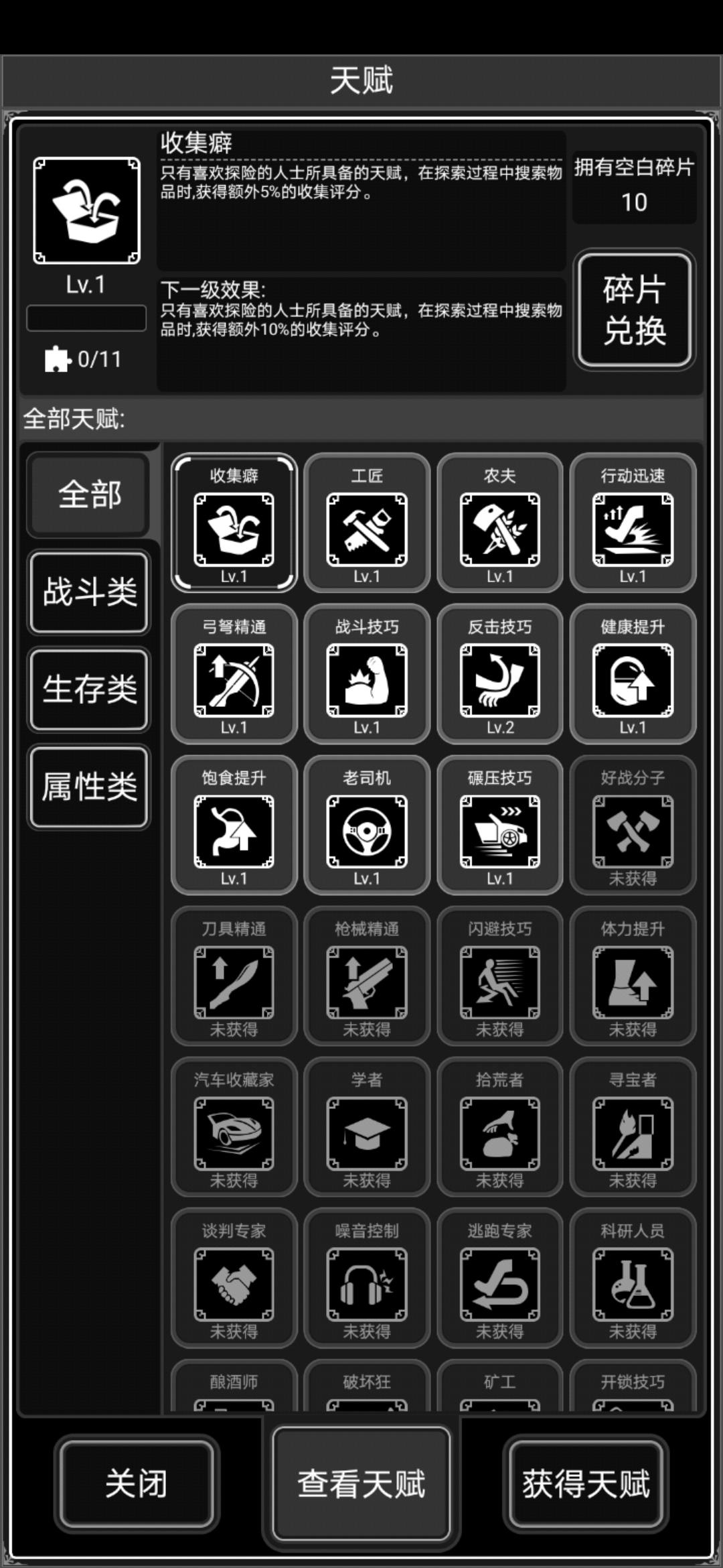 天赋如图,靠着签到和活跃攒的信用点炼狱活到了90多天,目前在攒军步,感觉越来越难,打了一阵子尸潮发现家底空了,武器修不起,而且50多天开始水基本就靠买了,要不要结档换个难度啊,有点舍不得我的拖拉机