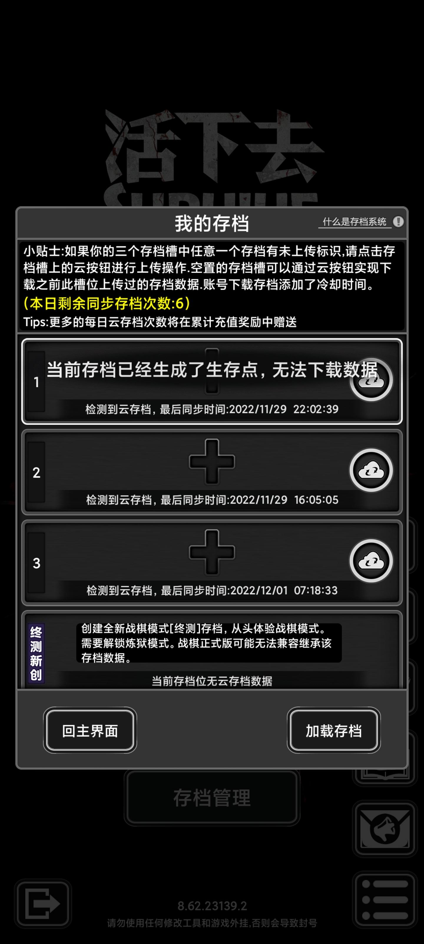 刚玩,这是什么意思?死了之后不能读取之前的云存档吗?