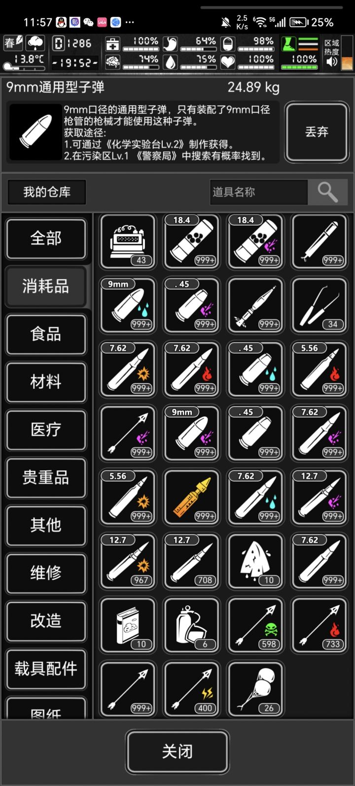闲着没事测测消音器的伤害多少,伤害比常规枪口补偿器没差多少,加个瞄准姿态暴击率上来就好了,令我惊讶的是,装上消音器有专属音效,之前碍于以为消音器没加伤害没用过就没发现,一码归一码,消音器打怪发出的噪音可以忽略不计,基本没有声音,如果有噪音控制天赋就更上一层,若平时喜欢玩枪械的兄弟但是怕枪带来的噪音大吸引怪一直进入战斗嫌麻烦的可以装消音器,伤害没比枪口补偿器差很多,暴击率可以瞄准姿态补回来(好了,水