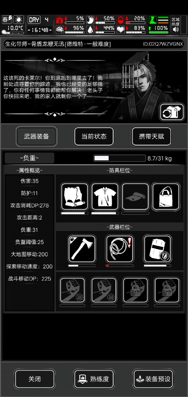 9.16战棋模式禁sl禁寄送无天赋生存,目标200天,启动!200天之后会开新帖子讲述生存心得()希望能活到200天吧后续:第四天看上去还活着但已经死了