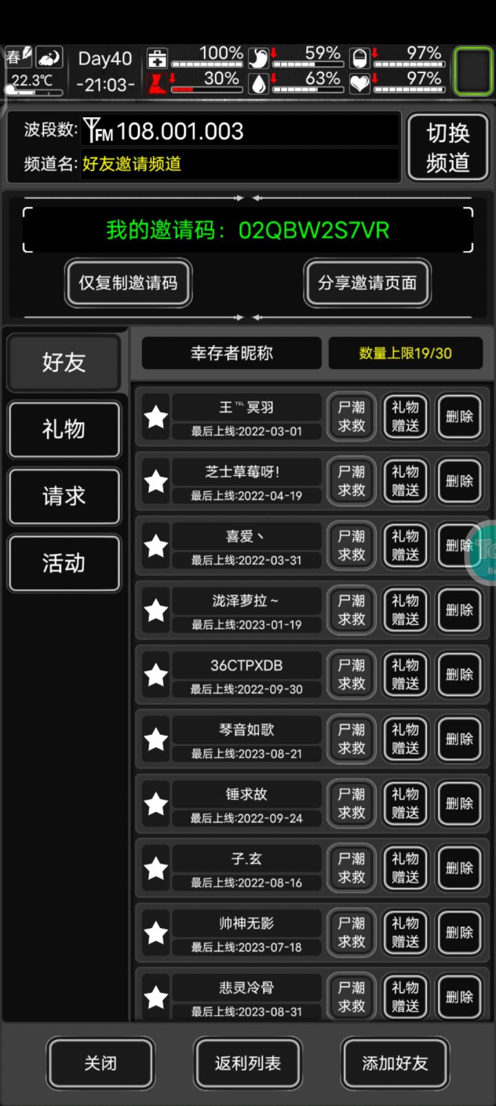 之前退坑了一段时间,现在又想重新回归,结果一看好友们也好长时间没上线了重新再加几个好友,长期上线02QBW2S7VR