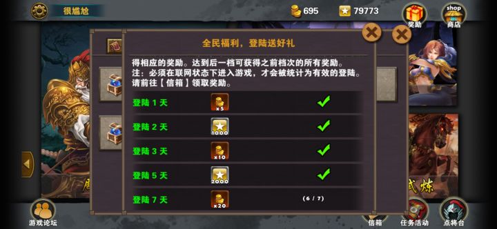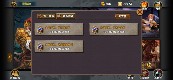 一转眼,策马三国志玩了大约2年了,一成不变的策马让我实在是钦佩策马三国志的策划老师。前几天收到线报说是策马三国志的姊妹篇策马守天关大更新了,实在是五内俱焚的恼火啊,守天关是3日一小更5日一大更,活动也是连连看的节奏,里面的任务也是做不完的做,希望策马的领导重视一下策马三国志,毕竟是你的发迹之游~!应该要有感情的,策马三国志的竞技场多少年了没有更新了,建议更新一下竞技场的奖励,丰富一点,这一竞技场打的人才多,请考虑一下我的建议