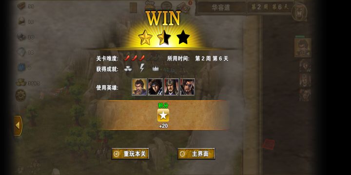 本人和业伟大神为了研究不买将三辣椒三星通关华容道。昨天晚上开始玩到凌晨三点钟!今天有花了两个多小时终于在第二周第六天通关了,期间打了九场,其中周泰(两星),两次弓箭营(三星),一次树林资源兵(三星),一次神像兵(三星) ,两次农民(三星),赵云上方两波兵(三星) ,虽然超时了两天但其他地方没任何毛病。想着两星半总有了吧,结果给我一星半对你没看错一星半!!!我钱也充了也没什么地方违反了游戏规则,我