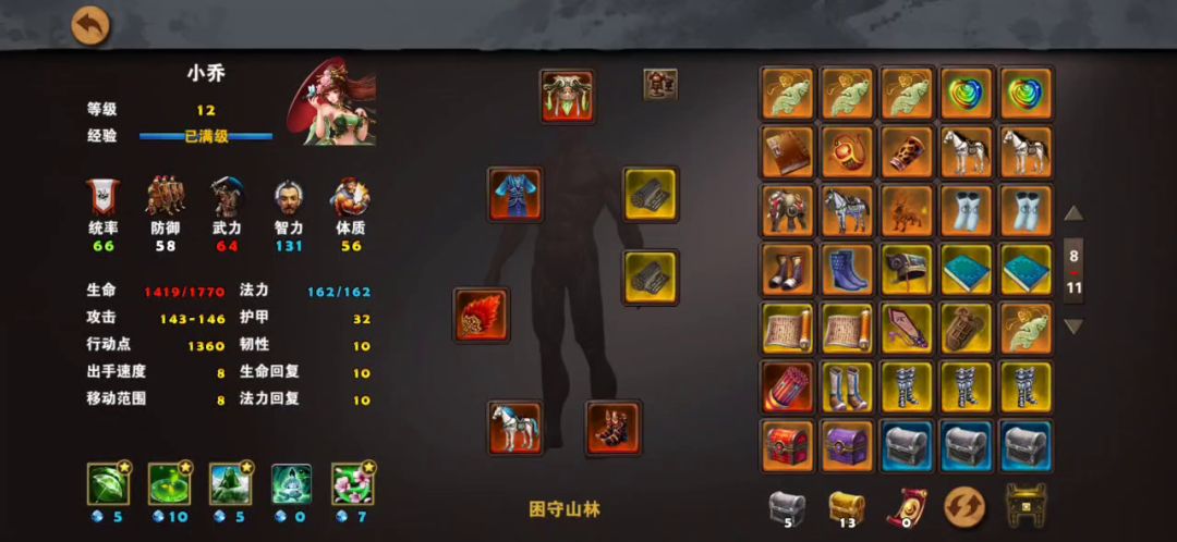英雄出装:太史慈:后羿弓(毒弓、血煞)、擎天甲(勇士甲)、白翎冠(疯魔头)、虎鞋、赤兔马、金刚琢、夕兽护腕小乔:朱雀羽扇、天玄道袍、清灵头(万灵头、水镜头)、虎鞋、招财猫、太平要术、龙佩周瑜:朱雀羽扇、天玄道袍、水镜头、虎鞋、招财猫、莲花、太平要术、龙佩卡片出装:准备就绪、战前准备、木头卡、粮食卡打法思路:第五周开始就把小乔的马最好换成减移动范围的马(月光寒风)这周开始敌方单位多的就吓人
