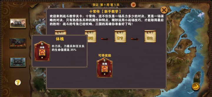奖励:体魄卡体魄:朴刀兵、刀盾兵、百夫长生命值提高35%关卡难度:★打法思路:第一关地图很小就用系统送的黄色装备就可以轻松过,这个关卡就是给大家用来熟悉打法的十常侍·郭胜(贾诩) - TapTap娱乐关卡之十常侍一郭胜(赵云) - TapTap第二关同样也是地图很小地图上会出现建造我们可以在这些建造里招募兵种(需要资源)十常侍·賽硕(贾诩) - TapTap娱乐关卡之十常侍二骞硕