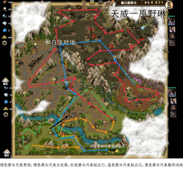 推荐英雄:贾诩、太史慈推荐卡片:准备就绪、战前准备、金币卡、木头卡英雄出装:贾诩:雌雄剑、金衣(吉利服、龙鳞甲)、水镜头、和氏璧、五色石、木牛流马、幼麟鞋太史慈:后羿弓、擎天甲(勇士甲)、射手头、夕兽护腕、龟盾、白虎、戏法鞋赵云:血煞、勇士甲、疯魔头、金刚琢、东皇钟、虎鞋、黑熊打法思路:打完淳于导以后先和白法对话激活糜夫人任务,然后沿着上方开始收集属性增益宝石,地图里的营寨不用去管赵云