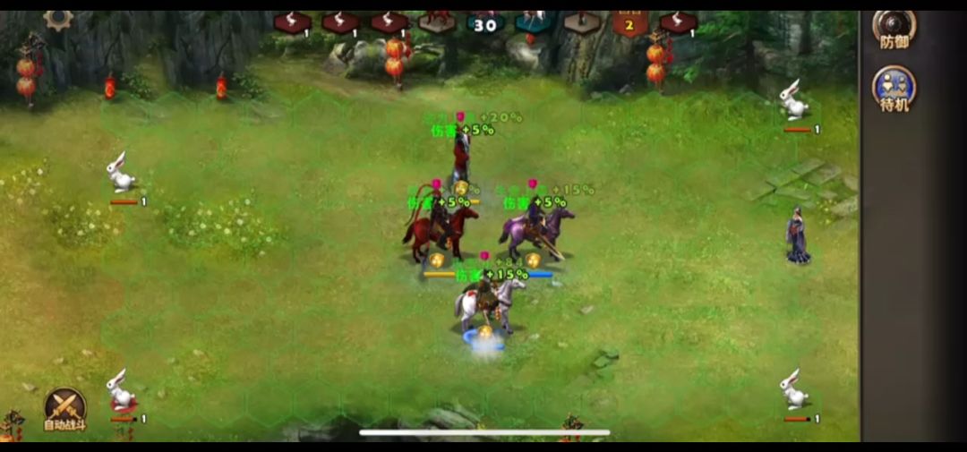 日常任务中的汉中击败黄月英是10金币任务,会员有金币翻倍的优惠,打法很简单,整个任务中就一场有规模的战斗就是对決黄月英,开局可以选一位自己应手的英雄出战,游戏开始先收了许褚和夏侯惇加入曹操队伍,这样三将斗月英时可以让她的霹雳车因车边有敌军不能发射。码头渡河去对岸无需打赵云,一定要在铁人像处吃掉移动石后去地图中间击败守营寨的蜀军,这时候黄月英出现,打法是贴着霹雳车打。请参考视频。