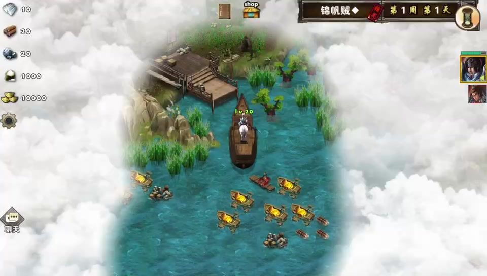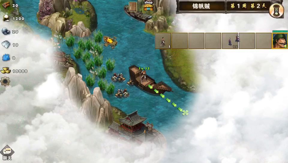 剧情里面的锦帆贼关要求击败关羽可以获得金币奖励,第一阶段甘宁第一天先去东边的竞技场吃了属性和移动宝石再返回水中再去东南边的陆地吃移动宝石再下水移动到最东头抢在敌人前面拾取浮在水面上的宝箱,获得战斗中两次行动的技能。第二阶段就是去东北陆地板块拿去弓箭手和鹰卫。拿下这里的弓箭手营和攻下这里的主城建造弓手营。这里有一个敌将,有机会就干掉他可以获得金币等奖励。第三阶段就是暴打关羽了,打他首先要击败最东边船