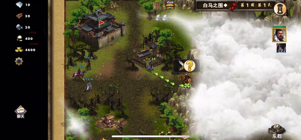 武将周瑜开局,选择副将太史慈。用太史慈必配后裔弓就不用说了,武力越高越高,现在都有神兽之力又能增加部分伤害。再说周瑜雌雄剑是标配可以给太史慈增加攻击,还要带一个将军印,这样可以让兵种多一次出手。第一天周瑜先营寨升级弓手营后招募神射手后去找太史慈,神射手平均分好左走半路停下过天是为了不和巡图的敌将开战,过天后左走就看到严白虎驻守的城了,点击开战,利用将军印兵种双动1.2个回合就拿下目标。