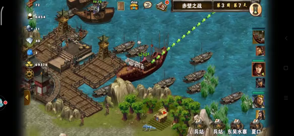 借东风这个关卡开局去对岸先找风伯,要注意尽量避开巡逻的敌船,尽可能不和他们打,要是有戏法鞋的话,可以在、给我们的武将换上一个,这样风伯和最后的BOSS都不是先手而使我们被动了,利用周瑜和诸葛亮的技能,击晕他,然后下狠手杀掉就可以了~