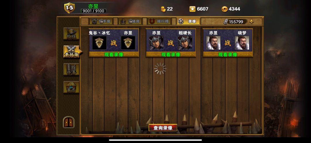 第一回合:鲁肃放水鬼,戳死了一组投弹手。张辽开大第二回合:张辽开大秒了刘备第三回合:鲁肃被打出五色,张辽被集火秒杀第四回合:鲁肃死亡,我方曹操两组凤凰,对方是一组龙和投弹手。如果没有曹操,凤凰不是龙的对手,但是有曹操buff加成,最后曹操张辽胜利。我第一次在竞技场见鲁肃这个英雄。所以觉得不错就分享给大家。第二是最近在玩张辽,但是一直操作不好,所以学习一下