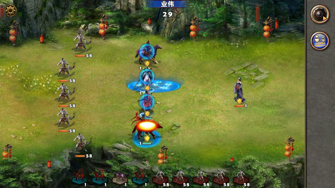 1.战术卡(火箭和战前准备或者狙击,我的战前准备卡等级有点低),其他两张卡随意2.英雄出装,刘张,刘备亮大,张飞随意,有龟盾更好。刘备有月光马或者带寒马3.美人计优先打骑兵丁奉,先打小兵,打完小兵,在两个回合秒杀丁奉。否则不好打