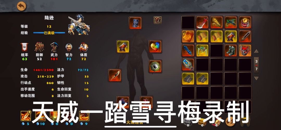 黄月英自带打手,也是一个比较好用的英雄,装备推荐:冥蛇或者九天惊雷杖、付完风衣或者天璇法袍、万灵冠、五色石、八卦镜或者红莲花灯、招财猫或者九色鹿、祥云鞋或者虎纹金缕鞋或者猛将靴,黄月英可用的装备比较多,可以根据自己装备情况适当进行调整。 打法注意事项:⒈尽量全亮技能,如果不能全亮技能,地图中有好多顺路的属性建筑物可以访问,⒉中间山贼头目可以选择打或者不打,建议去打,大败山贼头目有机率掉落黄色战术