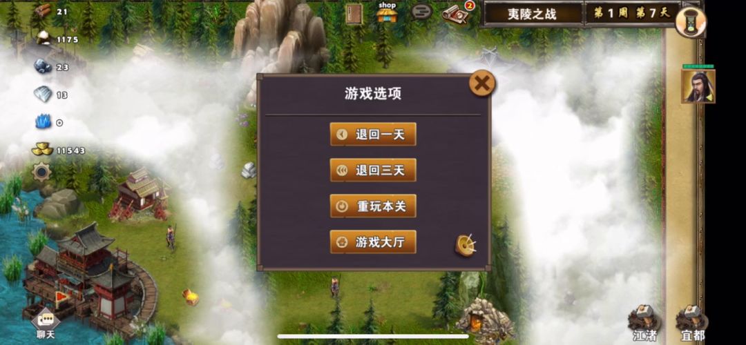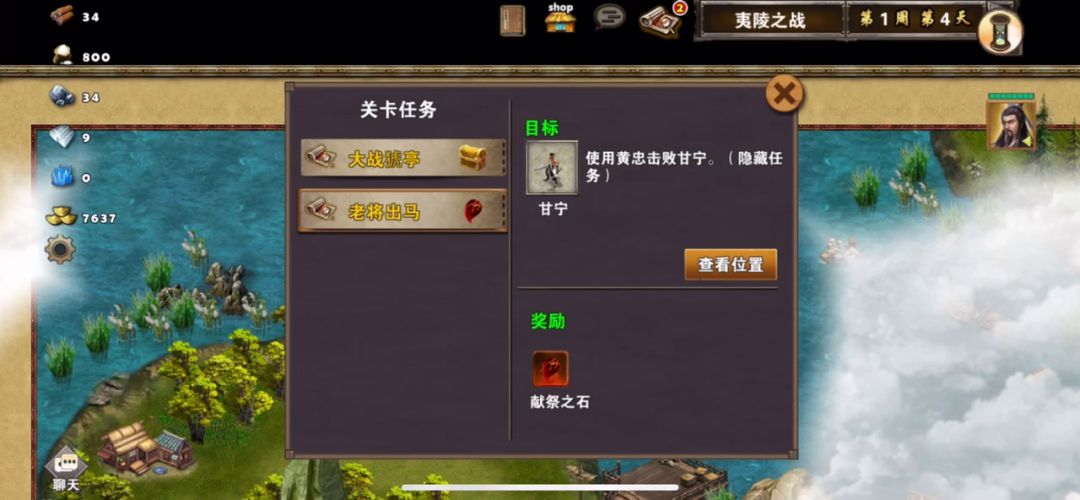 1周4日刘备行军至宜都,叫阵孙恒:尔等如愿投降,可绕尔等不死 关兴:孙恒竖子!死在临头,尚敢抗拒天兵乎! 孙恒:哈哈哈,让我等投降简直异想天开,看我砍下尔等头颅献给主公 刘备:众将士听我号令,冲啊! 关兴:众将随我进城拿下孙恒逆贼! 刘备:看我大招仁者之剑、召唤英雄 孙恒:哼,雕虫小技! 刘备:召唤英雄、召唤英雄…………… 孙恒:杀啊………………… 激战数日孙恒渐渐落于下风,一不小心被擒,宜都被刘备轻松攻下,隔天刘备大摆宴席犒赏三军休息恢复全军状态。不日行至江边小城江渚,随上前叫阵:朱然,孙恒依然被擒,尔等还不快快投降! 朱然:哼,誓死不降! 刘备:既然如此,众将听令,攻城开始,杀啊 朱然:弓箭手何在,给我射死他们! 刘备:看我仁者之剑,英雄召唤 朱然:全力防守 经过数日苦战,刘备等人终于攻下江渚,稍事歇息整顿三军,浩浩荡荡往猇亭而来。 说明一下:刘备攻城的时候最好装备红莲花灯速度达到9,这样可以先出手,一直召唤英雄,这样城里的敌人会被一直吸引在城里不会出来,可以多打几次,如果运气好,不停的召唤出张苞,可以轻松无损打败敌人。占领城池后尽快发展成内建筑(集市、府邸、翰林院、靶场、观星台、寺庙、玄龟池、民居),具体打法、行动路线详见视频!