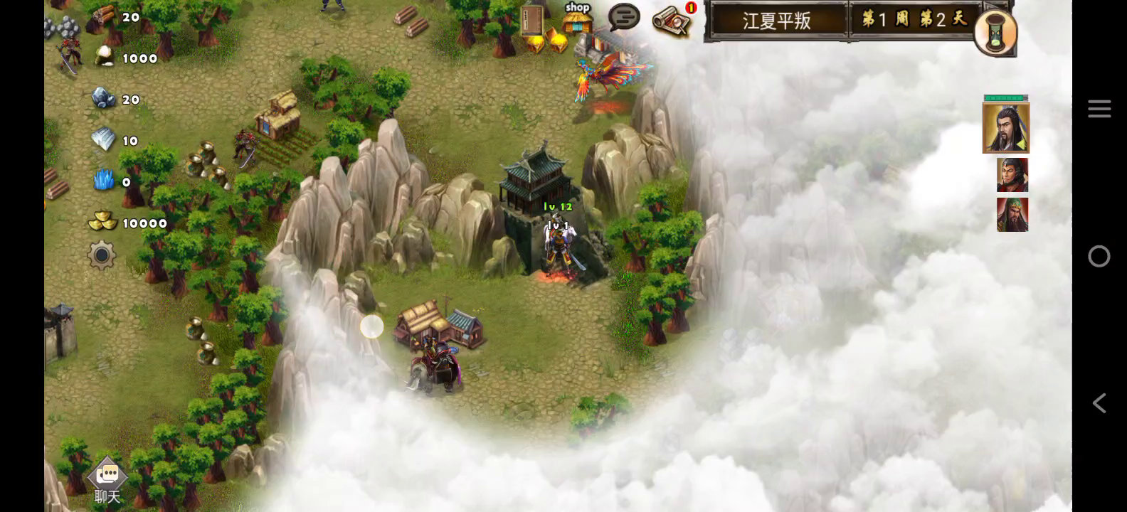 刘备打败赫蓝胡次后可以看见右边有一座城池,守城boss应熊卫士,城内没兵,boss血很厚,利用刘备寒风马减移动,诸葛亮大招眩晕控制,贾诩输出,等到boss 跑出城基本残废了,3个英雄随便打几下boss就挂了,攻下城池后尽快发展成内建筑(优先发展集市、府邸、翰林院、朱雀台、靶场、民居、农田),记得每2周可以招募一次朱雀,地图中有3个高级靶场,曹操负责去高级靶场招募神射手升级鹰卫,具体打法、行动路线详