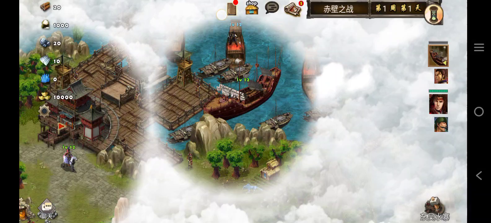 蜀国魏国v0攻略已经做完,现在做吴国三星过关攻略,开局刷甘宁,装备不怎么样孙权不好亮大,感觉没有曹操好用,战术卡使用精锐步兵、连续作战、木工术、石工术,第一天孙权把周围小怪无损打掉,占领资源,第二天甘宁可以自由行动,把兵扔了或者给孙权,然后从码头下水捡资源,第六天貂蝉出现,甘宁招募入伍,期间孙权在家门口无损打小怪占领资源,之后甘宁从魏国码头上岸去打魏国boss,注意移动距离要保证打完boss可以从
