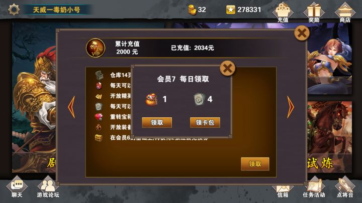 昨天大更新,对于一些领福利的地方以及献祭的地方今天做个总结。首先是会员福利,点充值,点Vip,每天领卡包和炎晶其次是点奖励,每天金币接着是商店每日礼包最后是献祭!没错更新以后献祭不再是v4以上的特权白嫖党的福利来了具体操作是点人物会有献祭图标,把多余的红装二合一