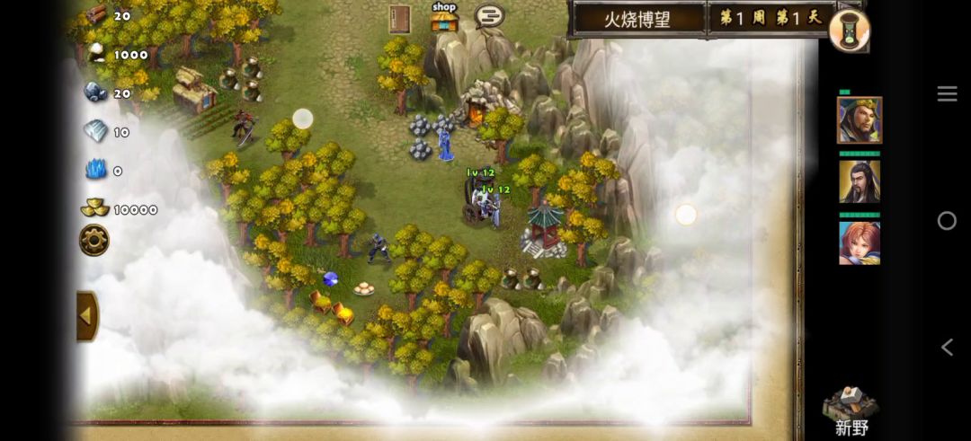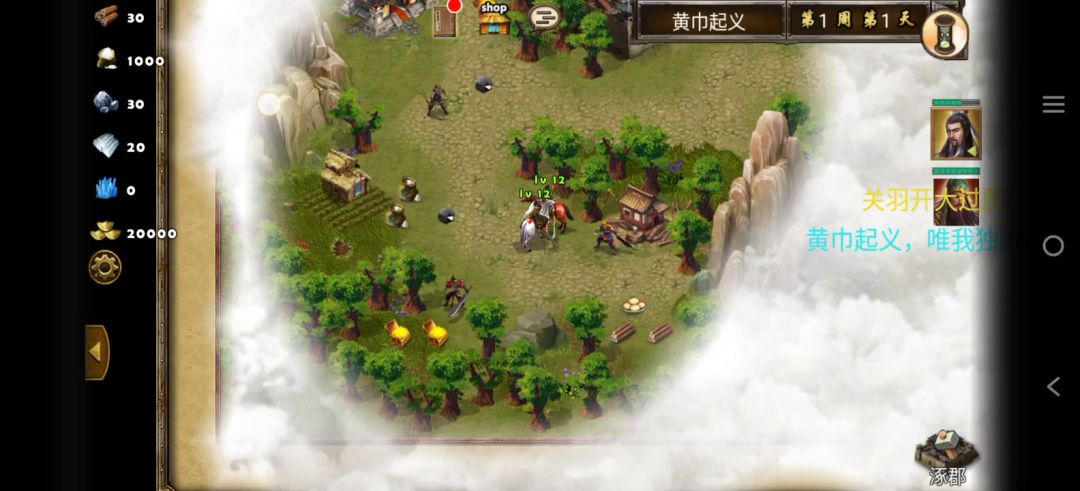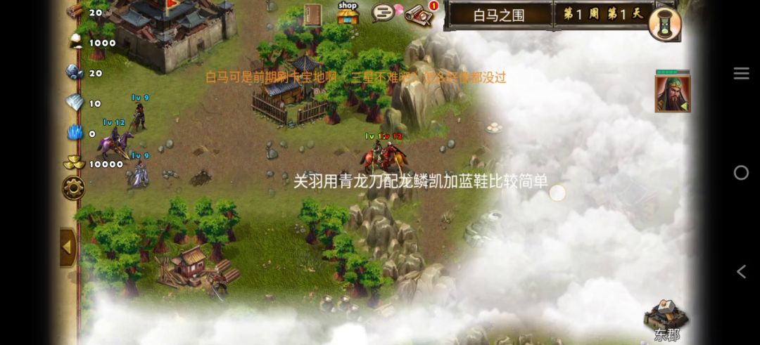 首先查看三星过关条件(9周1天内通关地图,并在挑战过程中获得15次三星战斗评价),9周的时间很充足,可以很好的利用上一关的复活、耗兵战术。兵种推荐朱雀、鹰卫、法师,战术卡推荐朱雀之痕、雀炎,准备就绪、战前准备,暗噬咒、天人合一、极意,根据自己战术卡情况选择四个。开局对话黄盖加入队伍,然后把水兵扔了,访问神像,往左走打小怪占领采石场,过桥看见一个boss,原地等待boss会过来打你,哎,由于装备不好