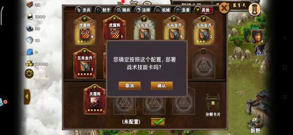 通关第三章,开启新章程,开启第四章需要80000积分,首先查看三星过关条件(2周5通关地图,并在挑战过程中获得10次三星战斗评价),时间有点紧,不过地图小怪多,10次三星战斗评价还是比较容易达成的,兵种推荐:鹰卫、白耳兵,战术卡推荐:准备就绪、战前准备或者火箭,精锐步兵、重装步兵或者天佑。开局可以选一个英雄辅佐战斗,习惯用关羽,当然选赵云或者张飞也可以,根据自己喜好选择。选定英雄后延路往右走,把