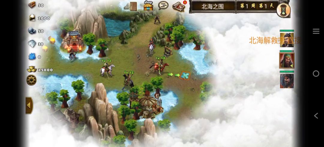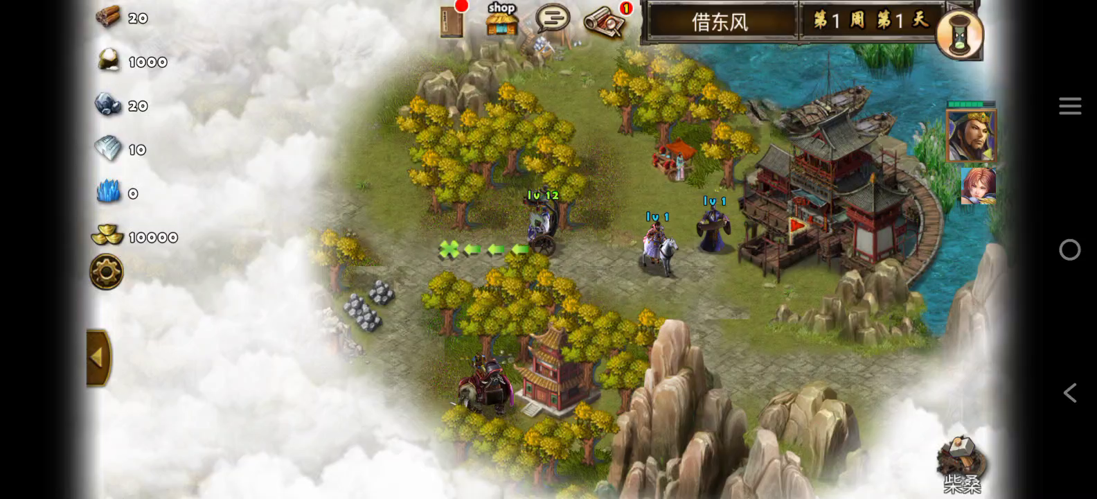 这关相比上一关难度提高很多,开局可以自选两个英雄出战(需要同一阵营),乱世枭雄、诸侯上将两方势力根据自己拥有英雄状况进行选择,选择其中一方后,另外一方会以敌方势力出现,加上黄巾军、董卓军共有四方势力进行角逐,而且这关还有时间限制(五周内通关地图,否则判为失败),兵种推荐鹰卫法师,战术卡上对应兵种即可,我本想招朱雀后来发现资源不够就没用朱雀。开局把周围资源、属性建筑都访问了,升级城内建筑,然后会遇见