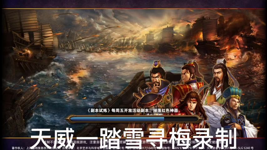首先查看三星过关条件(5周1天内通关地图,并在挑战过程中获得10次三星战斗评价),地图中小怪很多,5周1的时间也很宽裕。兵种推荐:朱雀、鹰卫、法师,战术卡对应兵种即可,这关可以自选两个自己拥有的英雄出场(每个英雄单独行动),可以选一个等级低的进去顺便练级,由于我没有购买英雄所以就用曹操刘备,刘备主攻,开局对话,系统赠送三件黄装,其中有一个雷鸣指环很好用(可惜每场战斗只能使用两次),给刘老板装备上,