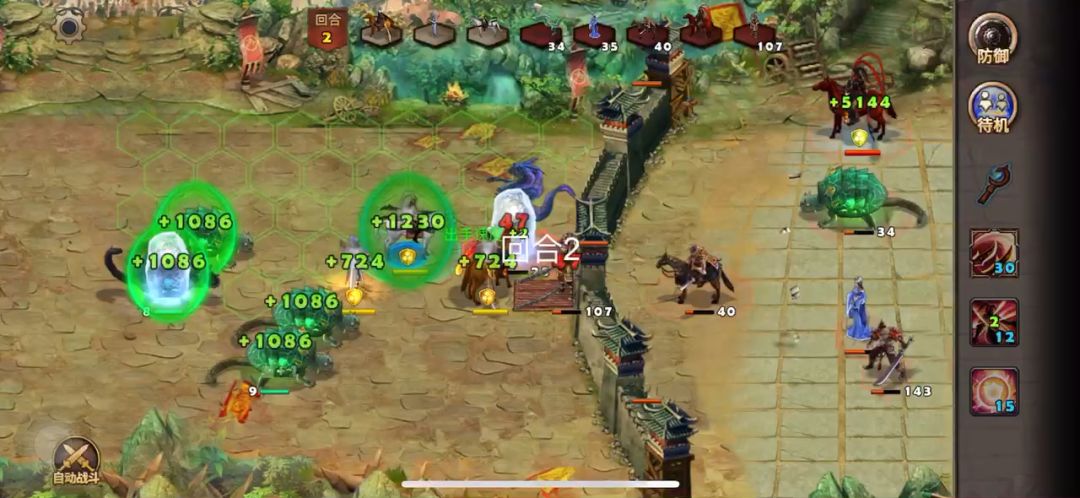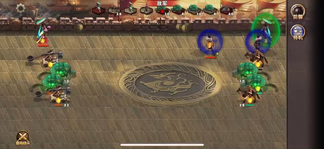 此战相对简单,主要能扛住对面武将第一回合的伤害,先打对面远程跟能破城门的单位