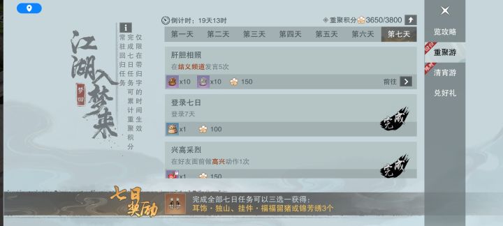 这个肝胆相照任务是bug还是怎样?我在结义频道发多少条消息也没触发