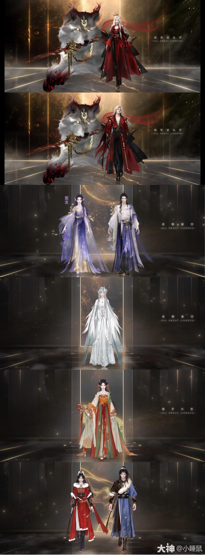 官方直播爆料的时装预览合集,有九子套、紫发套等等,只是预览,可能会有改动,以正式上线为准哈!有些可能也不会上线(比如去年有套九子还没上)——转载于小睡鼠