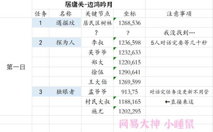 边鸿吟月第一日攻略 ——转载于小睡鼠