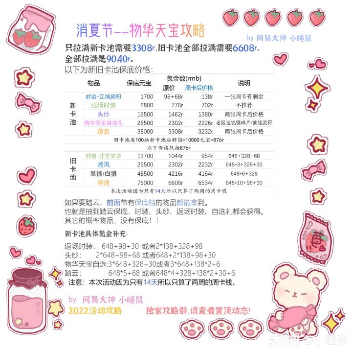 消夏节二次活动(为期14天)物华天宝攻略——转载于小睡鼠